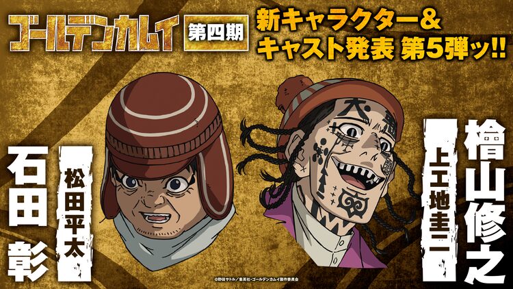 野田サトル原作によるTVアニメ「ゴールデンカムイ」第4期の追加キャストが発表された。松田平太役を石田彰、上エ地圭二役を檜山修之が演じる。