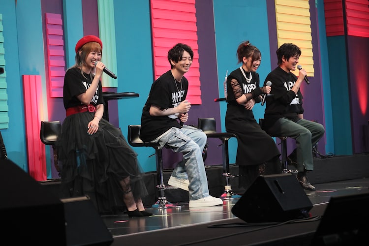 VTR上映の後はキャスト陣がトークを展開。4人は「MAPPA STAGE 2023」のイベントTシャツを着て登場した。花守は「みなさん、生に執着はありますかー」と元気に挨拶。出演者一同が「ありまーす」と続き、会場からは拍手とともに笑いが起こった。
