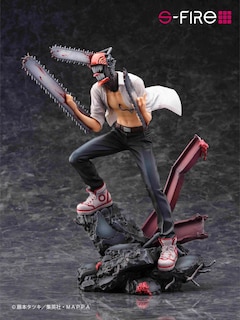 セガが手がけるフィギュアやぬいぐるみのブランド・S-FIREがチェンソーマンを立体化したこのフィギュア。両手のチェンソーを掲げた好戦的なポーズを取っており、ひるがえったシャツは躍動感を感じさせる。頭部の小さな傷も細やかに表現されているほか、背景台座の鉄骨や瓦礫にいたるまで、丁寧な造形と塗装で仕上げられた。