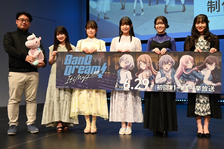 キャスト自ら演奏も行うガールズバンドプロジェクト「BanG Dream!(バンドリ!)」。MyGO!!!!!(マイゴ)は2022年の始動以来ライブ活動を重ね、今年4月にアニメ放送が発表されたものの、キャラクターやストーリーについては多くが伏せられていた。そんな中、この日は6月29日に放送スタートといったアニメ情報を多数解禁。メインビジュアルがお披露目されると、キャスト陣からは「向いてるほうは違うけど顔の向きは一緒」「誰も笑っていない」といったコメントが飛ぶ。綾奈はストーリーについて「重め」と表現し、「1つの目標に向かってみんなが進んでいくような話ではない。私にとっても『BanG Dream!』プロジェクトにとっても挑戦のタイトルだと思います」と語った。
