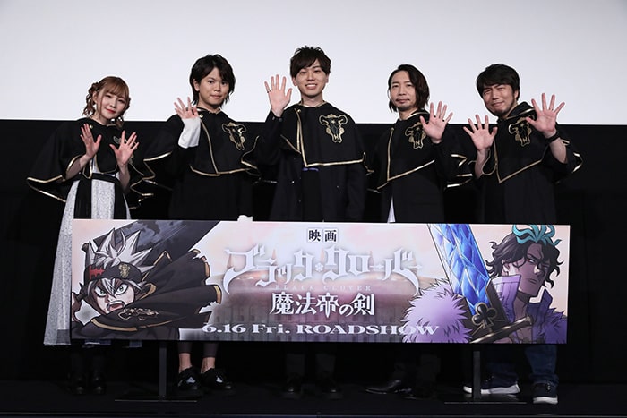 田畠裕基原作による映画「ブラッククローバー 魔法帝の剣」の完成披露イベントが、本日5月28日に東京・新宿ピカデリーで開催。アスタ役の梶原岳人、ヤミ役の諏訪部順一、ラック役の村瀬歩、ゴードン役の松田健一郎、グレイ役の高橋ミナミが登壇した。