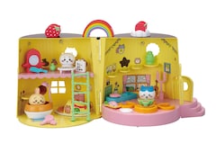 椅子やテーブルにちいかわたちや対応するアイテムを置くことで、セリフ音声が流れるギミックを搭載。ドールハウス遊びを盛り上げる、アニメ版の声優が担当したボイス500種以上が収録された。アイテムの置き方によりセリフにも変化が現れ、マンガやアニメの1コマを90シーン以上再現することが可能だ。