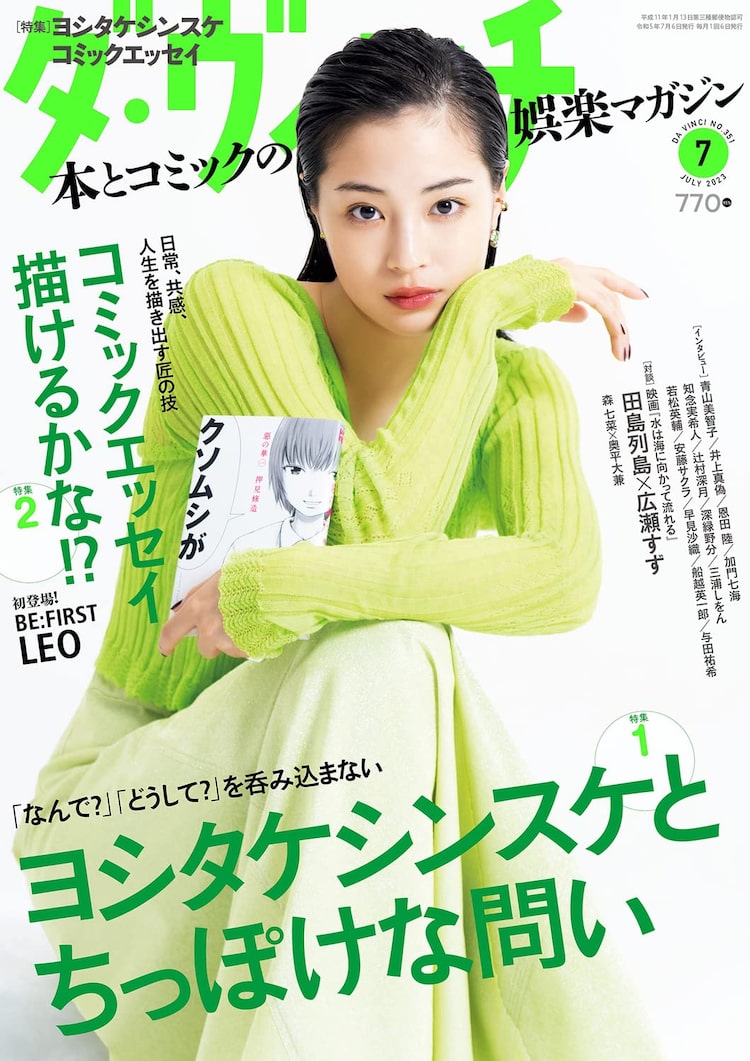 そのほかダ・ヴィンチ7月号では、「あの人と本の話」コーナーに早見沙織が登場。映画「水は海に向かって流れる」特集では原作の田島列島がインタビューに応じているほか、主演の広瀬すずと対談もしている。「コミックダ・ヴィンチ」のコーナーでは映画「君は放課後インソムニア」に出演する森七菜と奥平大兼が対談。「今月のプラチナコミック」では赤堀君「ビンテイジ」を取り上げている。