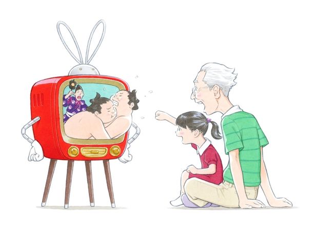 描き下ろしイラストは、祖父と孫が楽しげにテレビで相撲観戦してる様子をデザインしたもの。インタビューでは「観ている人がテレビってこんなにおもしろいんだというところをもう一度、思い起こしてほしい」というイラストへかけた思いも明かされる。またテレビにウサギの要素を落とし込んだキャラクター・ロビットの誕生秘話も。後編は12月6日に公開される予定だ。