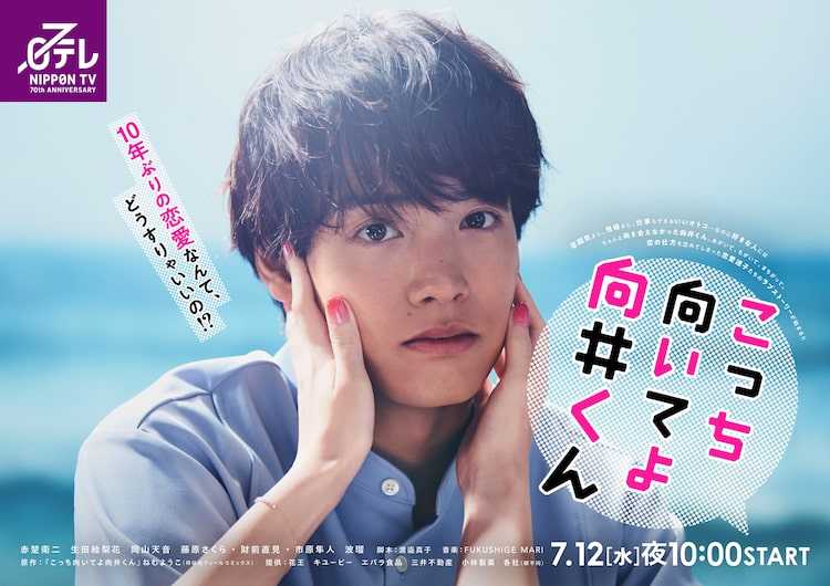 ポスタービジュアルは、海辺でのデート中に相手の女性から「こっち向いて」と、向井が顔を引き戻された瞬間をイメージしたもの。ビジュアルには「10年ぶりの恋愛なんて、どうすりゃいいの!?」というコピーが入れられた。ドラマ「こっち向いてよ向井くん」は日本テレビ系にて7月12日22時にスタートする。