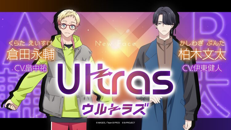 メンバーのA輔こと倉田永輔役を畠中祐、B太こと柏木文太役を伊東健人が演じることが発表されてたウルトラズ。彼らは“Yourtube”という配信サイトで大人気の2人組Yourtuber(ユアチューバー)だ。さまざまな企画動画を投稿するだけでなく、作曲も自身でこなし、楽曲カバーでは高い歌唱力を披露。その多才さで視聴者の心を鷲掴みにしている。併せてアイドルグループ・B-PROJECT14人の設定画が到着。14人の新規ビジュアルは、近日公開される。
