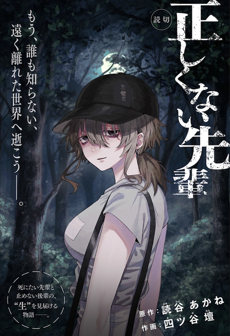 あなたの正しくないところが好き、死にたい先輩×止めない後輩を描くジャンプ+読切 2023年7月17日2023年7月17日 editor 「正しくない先輩」扉ページ (c)読谷あかね・四ツ谷壇/集英社読谷あかね原作、四ツ谷壇作画による読み切り「正しくない先輩」が、本日7月17日に少年ジャンプ+で公開された。 物語は大学時代に仲の良かった先輩後輩が久しぶりに再会するところから始まる。仕事も人間関係もすべて捨て、これから長野に死にに行くと言う先輩。すると後輩はそれを止めもせず、死ぬのを見届けたいと長野まで付いて行き……。いつも不完全で予想外で、“正しくない”先輩の最期まで変わらない姿が描かれる。 関連記事映画「クスノキの番人」本ビジュアル&予告映像が到着、追加キャストに大沢たかおら大友克洋による劇場アニメ「MEMORIES」30周年記念アイテム登場、全国5劇場で駆け出し店主が恋する料理上手な彼女は…新連載「赤髪エルフのお惣菜屋さん」「ファンタジスタ」の草場道輝の新作、タイムスリップ×サッカー「テルスター’86」1巻自分にだけもふもふが見える…不遇な令嬢が新天地で甘々新婚生活 マグコミ新連載「チェンソーマン」米津玄師×宇多田ヒカルが歌うEDテーマの“スペシャルMV”公開 Tweet