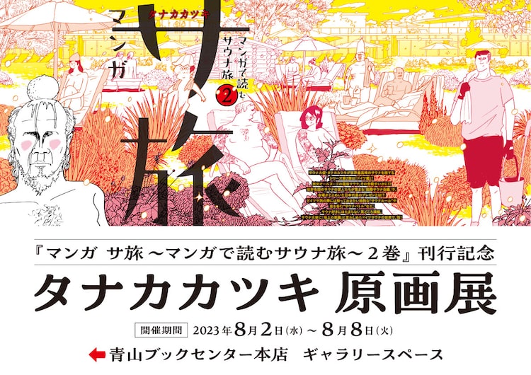タナカカツキ「マンガ サ旅~マンガで読むサウナ旅~」の2巻が、7月21日にマガジンハウスから発売される。これを記念し、8月2日から8日にかけて東京・青山ブックセンター本店で同作の初となる原画展が開催されることが決定した。