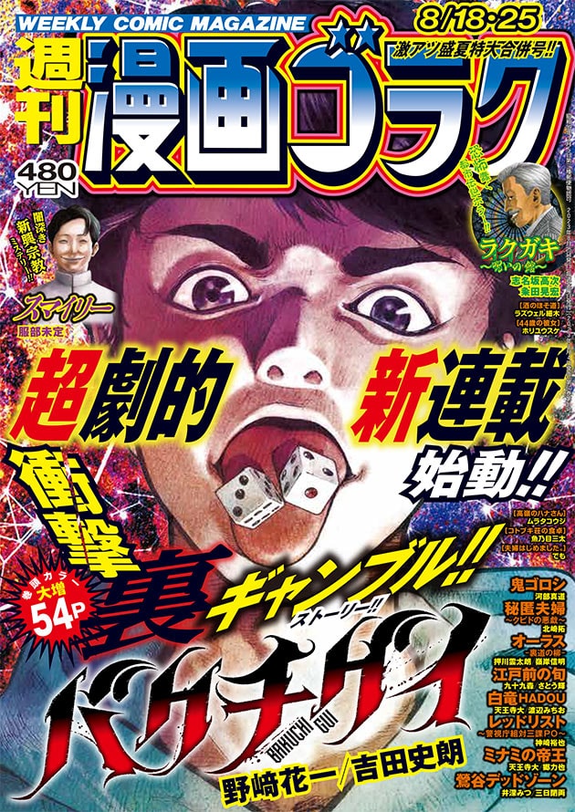 野崎花一原作による吉田史朗の新連載「バクチグイ」が、本日8月4日に発売された週刊漫画ゴラク8月18・25日合併号(日本文芸社)でスタートした。