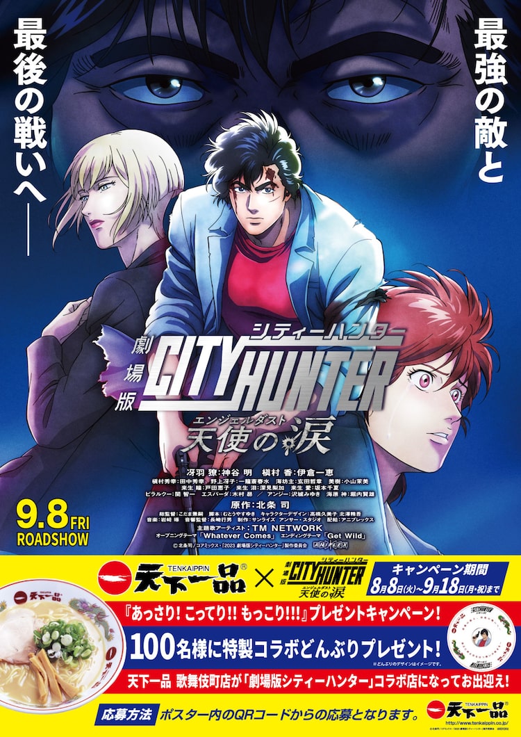 北条司原作によるアニメ映画「劇場版シティーハンター 天使の涙(エンジェルダスト)」と天下一品がコラボレート。「あっさり!こってり!もっこり!!!」プレゼントキャンペーンが、明日8月8日から9月18日まで展開される。