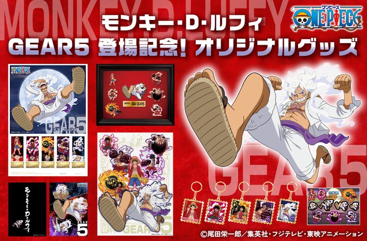 今回のアイテムはルフィの新形態“ギア5”の登場を記念して販売される。「フレーム切手&額装ピンズセット」は、通常時のルフィと“ギア2”から“ギア5”までのルフィがデザインされた5種の切手、そして額装されたピンズのセット。また、同じデザインの切手と「ワノ国」編のポストカード4種がセットになった「フレーム切手&ポストカードセット」も登場した。