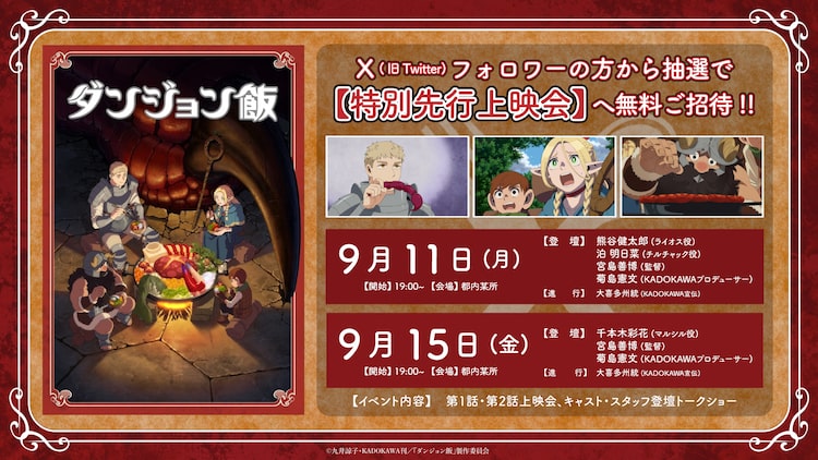 アニメ「ダンジョン飯」キャスト&スタッフトーク付きの先行上映会にフォロワー招待