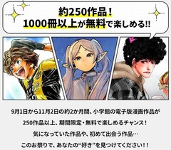 「ミステリと言う勿れ」「葬送のフリーレン」「アオアシ」など、小学館の電子コミックが250作品・合計1000冊以上無料で楽しめる期間限定キャンペーン「小学館 漫祭!2023」が、本日9月1日に各電子書店でスタートした。