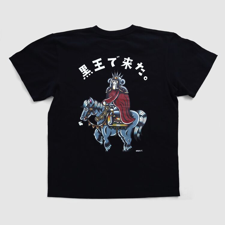 デザイナーKAT$UOとのコラボアイテムはソックス、Tシャツが登場。ソックスにはポップな見た目のジャギとラオウがデザインされており、ストリートアイテムとしても目を引く仕上がりに。Tシャツにはラオウと、愛馬・黒王号がこちらもポップなイラストで描かれており、その上には「黒王で来た。」の文字が入れられた。さらにマンガのコマをデザインしたマグネットやジオラマアクリルスタンド、拳王軍のエンブレムを半立体化した「拳王軍メタルキーホルダー」、毎日断末魔のシーンを楽しめる「日めくり!断末魔ん年カレンダー」、聖帝十字陵の聖碑型クッションなどがラインナップされている。