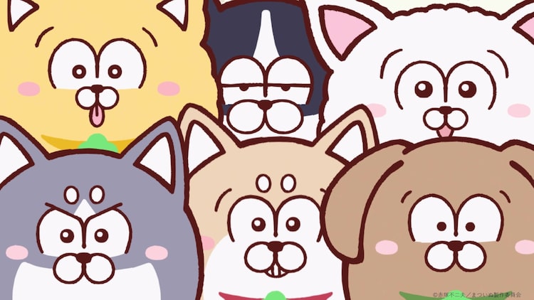「おそ松さん」に登場する松野家の6つ子にどことなく似ているまついぬ。2018年3月にプライズ商品として誕生して以降、コラボカフェやグッズ、書籍などと展開の場を広げてきた。PVではしばいぬ、ハスキー、レトリバー、ボストン、ポメラニアン、チワワの6匹が、ごはんを食べたり、お昼寝したり、月をすべり台にして遊んだり、温泉に入ってのんびりしたり、サンバの衣装に身を包んで楽しくダンスをしたりする姿が楽しめる。TVアニメ「まついぬ」はテレビ東京で毎週土曜7時よりオンエアされている「イニミニマニモ」内で10月7日にスタート。AT-Xでも10月12日より毎週木曜22時5分に放送される。