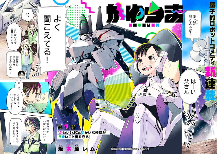 「リスタート! ~34歳ゲームディレクターのつよくてニューゲーム~」の坂木原が手がける「かゆうま」は、空間を超えて出現した嵬獣(かいじゅう)に対抗できる存在・御神体(ごしんたい)に搭乗する中学生・実乃莉を描くロボットコメディ。内申点アップのため、御神体と呼ばれる巨大ロボットに乗る“祈り子”になった実乃莉だったが、なかなか嵬獣を倒せずにいた。そこで30年前に“祈り子”として戦っていた男性・紫藤直哉を呼び出すが……。次回は10月12日に更新される。