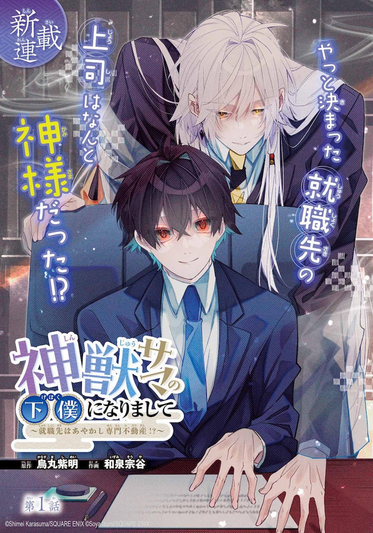 烏丸紫明原作による和泉宗谷の新連載「神獣サマの下僕になりまして ~就職先はあやかし専門不動産!?~」が、本日9月15日発売の月刊Gファンタジー10月号(スクウェア・エニックス)でスタートした。