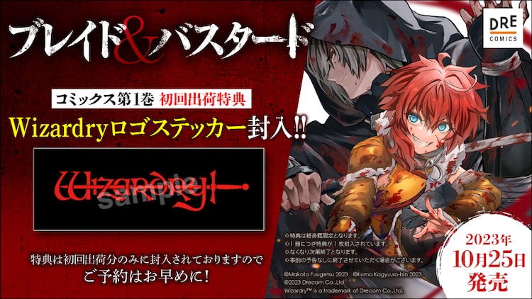 10月25日に発売される「ブレイド&バスタード」の単行本1巻に、初回出荷特典として「Wizardryロゴステッカー」が封入されると発表された。