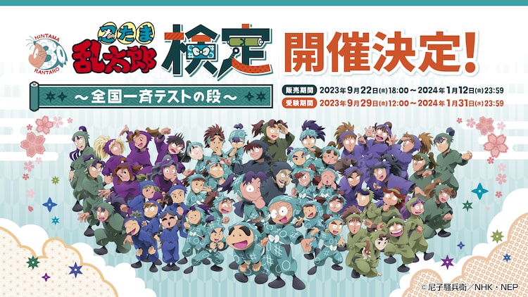 尼子騒兵衛原作によるTVアニメ「忍たま乱太郎」に関する知識度を測るための公式Web検定が開催決定。受験チケットは9月22日18時よりセブンネットショッピングにて販売され、検定は9月29日12時に開始する。