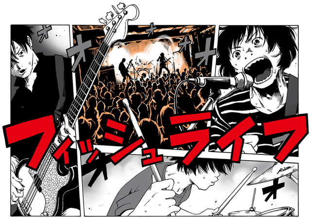 「SHIORI EXPERIENCE ジミなわたしとヘンなおじさん」などで知られる長田悠幸が、フィッシュライフのアートワークを手がけた。