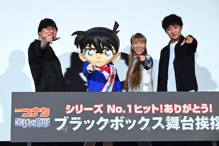 青山剛昌原作による劇場版「名探偵コナン 黒鉄の魚影(サブマリン)」のティーチイン付き“ブラックボックス”舞台挨拶が本日9月30日に東京・TOHOシネマズ日比谷で開催され、原作者の青山、江戸川コナン役の高山みなみ、立川譲監督が登壇した。