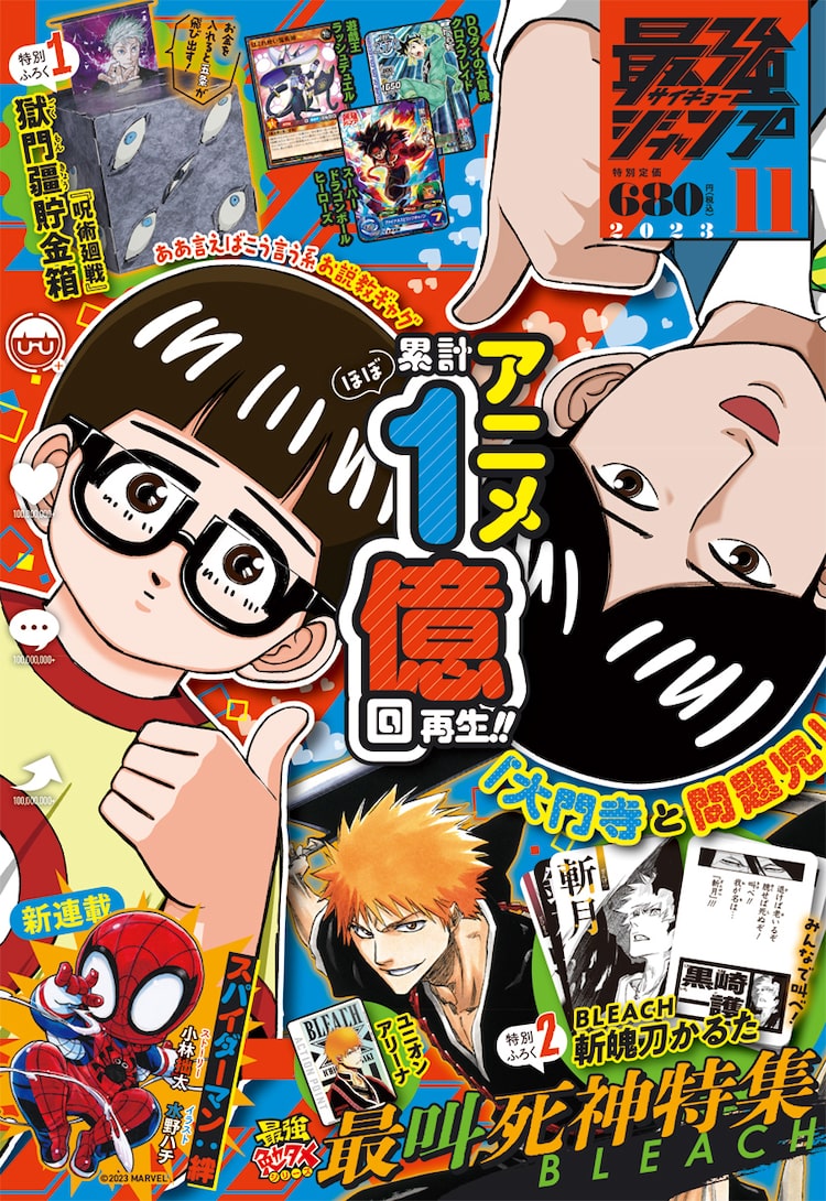 このほか今号では「BLEACH」に絡め「最叫死神特集」も展開。「BLEACH」に登場する死神の解説に加え、ジャンプ作品に登場する死神や、世界の神話の中で語られる死にまつわる神々について紹介している。さらに芥見下々「呪術廻戦」より、お金を入れると五条悟が飛び出す「獄門疆貯金箱」が付属。小林拙太ストーリー、水野ハチイラストによる新連載「スパイダーマン:絆」もスタートした。