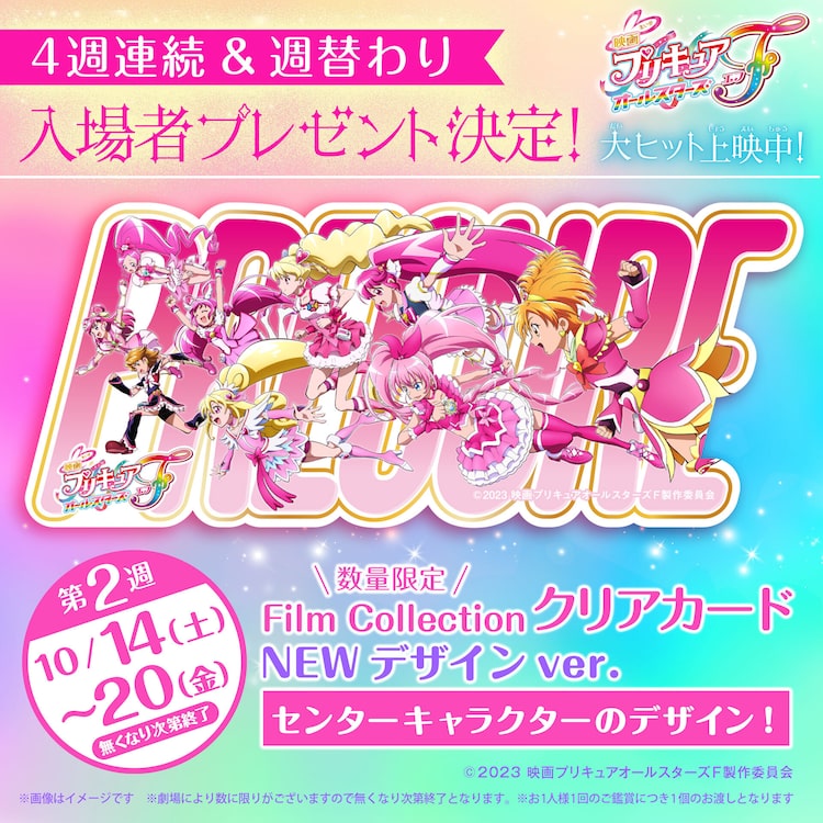 「映画プリキュアオールスターズF(エフ)」の入場者プレゼントとなる「Film Collection クリアカード NEW デザイン ver.」第2弾のデザインが公開された。10月14日から20日までの期間、数量限定で配布される。