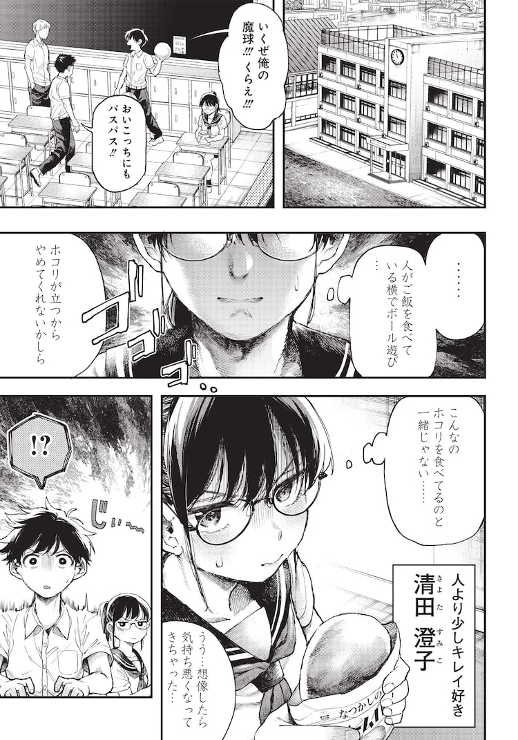「清田さんは汚されたい!?」は人より少しきれい好きな少女・清田澄子と、彼女のクラスメイトで男女どちらからも好かれている美人のお嬢様・白河ユキが織りなす物語。澄子がいつものように1人で昼食をとろうとしたところ、突然白河さんにお昼ごはんのパンを一口かじられてしまう。澄子は人のかじったパンは食べられないと、白河さんが見ていないところで捨てようと考えるが、白河さんは早くパンの味について語り合おうと澄子にパンを食べるよう催促してきて……。潔癖少女な澄子と、どこか意味ありげに澄子に話しかけてくる白河さんのやり取りが描写される。本日一挙に2話が公開された。