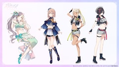 設定画では主人公の星北ヒナノと、幼馴染の西条リリア、そしてその後メンバーに加わった東坂ミオと南曜スバルの4人が新たな衣装に身を包んでいる。シングルスに出場する星北ヒナノと東坂ミオはそれぞれの個性が引き立つ衣装に。一方ダブルスとして、2人でのポールダンス披露に挑む西条リリアと南曜スバルの衣装は、ほぼお揃いの衣装となっている。