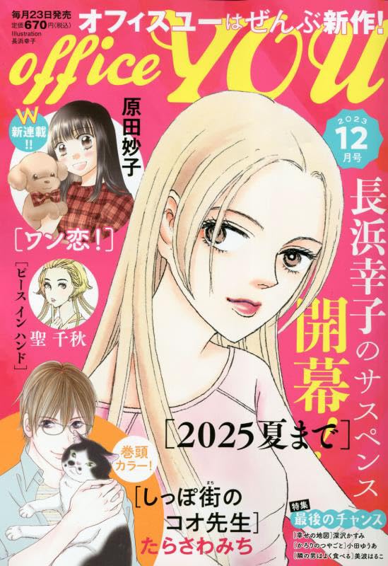 本日10月23日発売のofficeYOU12月号(集英社クリエイティブ)で、長浜幸子「2025夏まで」と、原田妙子「ワン恋!」の新連載2本がスタートした。