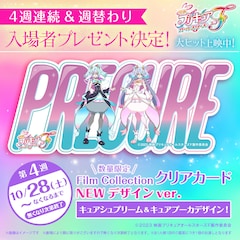 「映画プリキュアオールスターズF(エフ)」の新たな入場者プレゼントとして、「Film Collectionクリアカード NEWデザインver.第4弾」が10月28日より数量限定で配布される。第4弾には映画オリジナルキャラクターのキュアシュプリームとキュアプーカが描かれた。