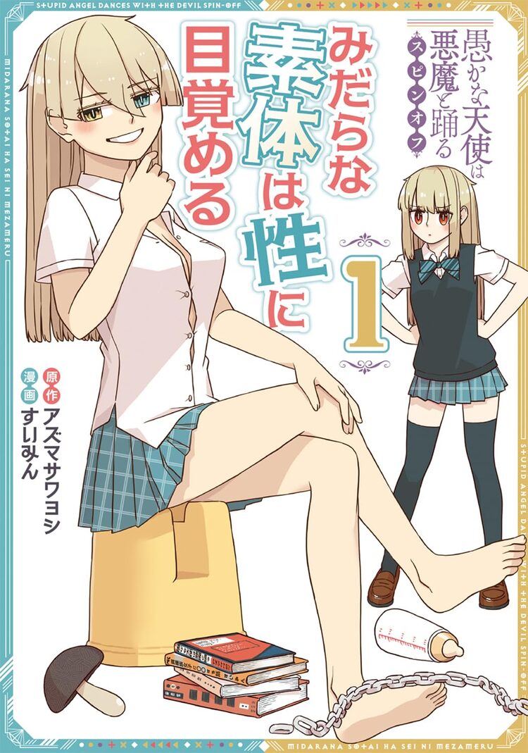 TVアニメ化も決定しているアズマサワヨシ作品「愚かな天使は悪魔と踊る」のスピンオフ「みだらな素体は性に目覚める」は、心と生を得た人形・リーリヤが「性」にも目覚めてしまったことから始まるドタバタコメディ。赤ちゃんがどこから来るのか知りたいリーリヤは、宿主である天音リリーからもらった保健体育の教科書で勉強をする。教科書には載っていないナマの知識を求めるリーリヤが、学校のトイレで男子に「息子」を見せてほしいとお願いしたり、百合マンガを読んで「下の口が喜んでる」という感想を持ったり、真面目にスケベなことに取り組む様子を描く。同作は電撃マオウ(KADOKAWA)で連載中。