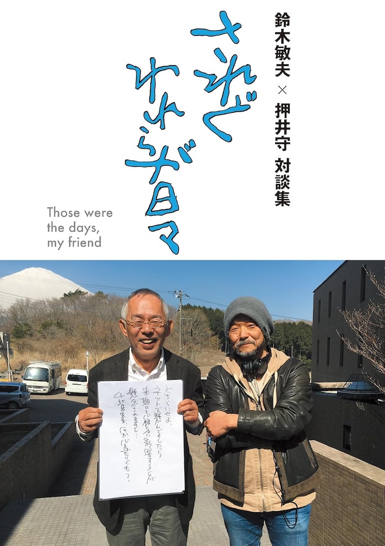 “悪友”である2人にしかできない、忖度なしの本音の応酬をまとめた「鈴木敏夫×押井守 対談集 されどわれらが日々」。歴代のジブリ制作アニメや押井作品、共同作業となった「天使のたまご」「イノセンス」などについて、雑誌・新聞・ラジオ・イベントで行われた数々の対談をはじめ、1980年代のアニメージュ(徳間書店)での座談会やコメント類も掲載される。さらに今回の書籍のために10月に行われた対談も収録。表紙には鈴木による手描きの題字と、押井が監督を務め、鈴木が出演した映画「血ぃともだち」ロケ先でのオフショットが使用された。