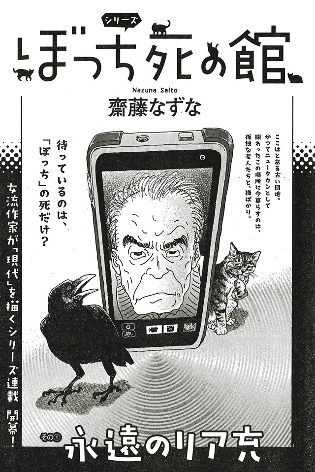 齋藤が“現代”を描き出す「ぼっち死の館」シリーズ。第1話ではスマホを手に入れたばかりの孤独な老人・近藤が、SNSにアップするための写真を撮影しながら、現実の世界が充実している“リア充”について思いを巡らせていく。次回は2018年夏頃に登場予定だ。