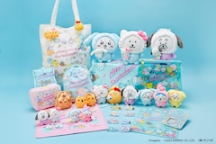 マスコットホルダーやマスコットブローチには、ぬいぐるみになった3キャラクターに加え、マイメロディのパジャマを着たハチワレ、ポムポムプリンのパジャマを着たうさぎ、ハローキティのリボンをつけたもちきんちゃく、マイメロディやポムポムプリンのカチューシャをつけたもぐらコロッケも登場。描き下ろしたデザインが全面にプリントされたトートバッグやタオル、ポーチ、エコバッグ、全8種でブラインド仕様の前髪クリップなど日常使いができるアイテムも多数用意されている。取扱店舗はサンリオの公式サイトで確認を。