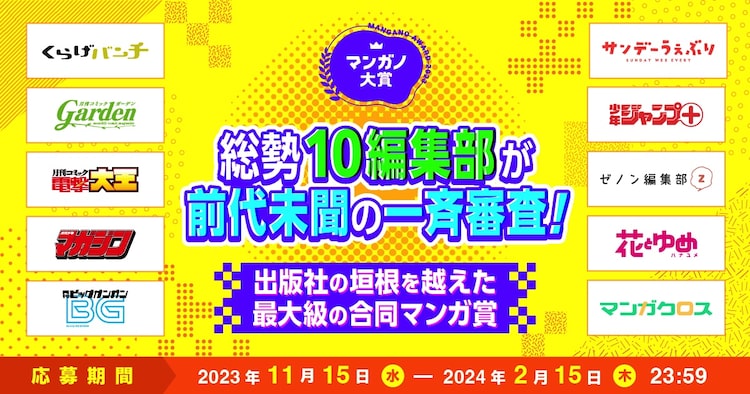 出版社・雑誌の垣根を越え、総勢10編集部が一斉審査する「マンガノ大賞」開催
