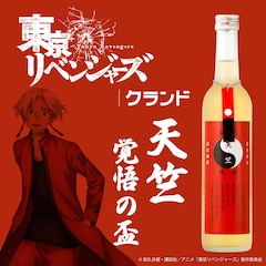 「天竺 覚悟の盃」は大抗争・関東事変前夜の天竺をイメージしたスパイシーな唐辛子梅酒。ボトルは天竺の特攻服をモチーフにデザインされている。また黒川イザナの耳飾りをイメージした着脱可能なボトルチャームもあしらわれた。商品を購入すると、特典として赤い器に金色でイザナが描かれた「『東京リベンジャーズ』天竺編 オリジナル平盃」が1つ付属する。