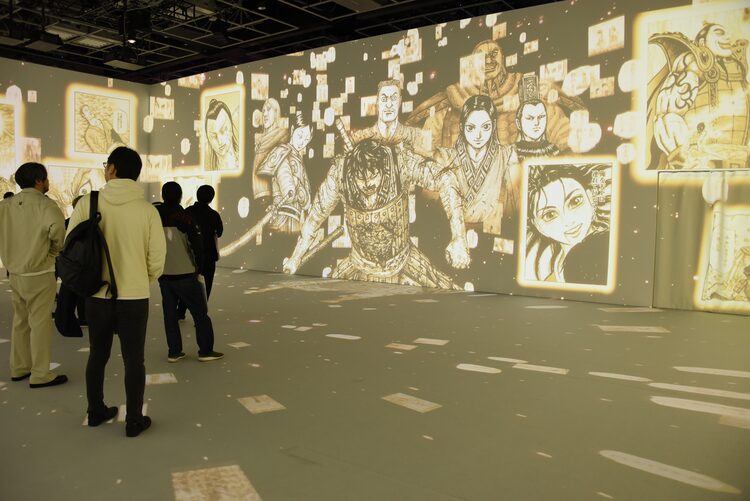 「マンガダイブ」とは最新技術を駆使した映像と音響により、空間全体にマンガの世界観が広がる没入型ミュージアム。周囲360°と床面の全5方向に映像が投影され、マンガを“体験”として味わえる。「キングダム」は11月17日発売の70巻で、電子版を含む累計発行部数が1億部を突破。このイベントでは「1億の光」をメインコンセプトに、5つの体験ブースが展開される。