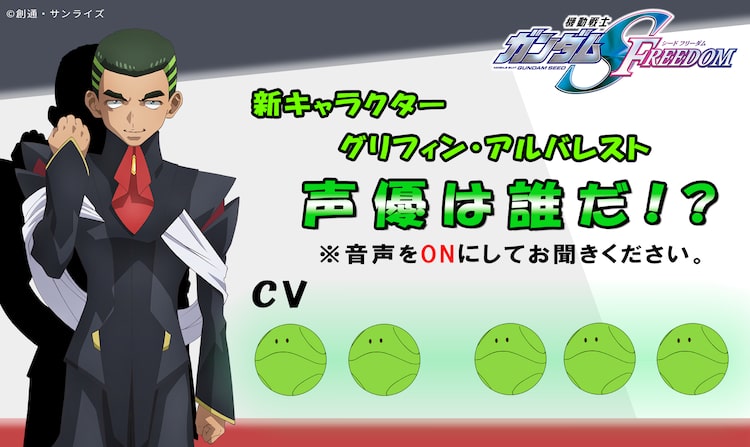 「劇場版『機動戦士ガンダムSEED FREEDOM』」の新キャラクターであるグリフィン・アルバレストのボイスが、「機動戦士ガンダムSEED」シリーズの公式X(旧Twitter)にて公開された。