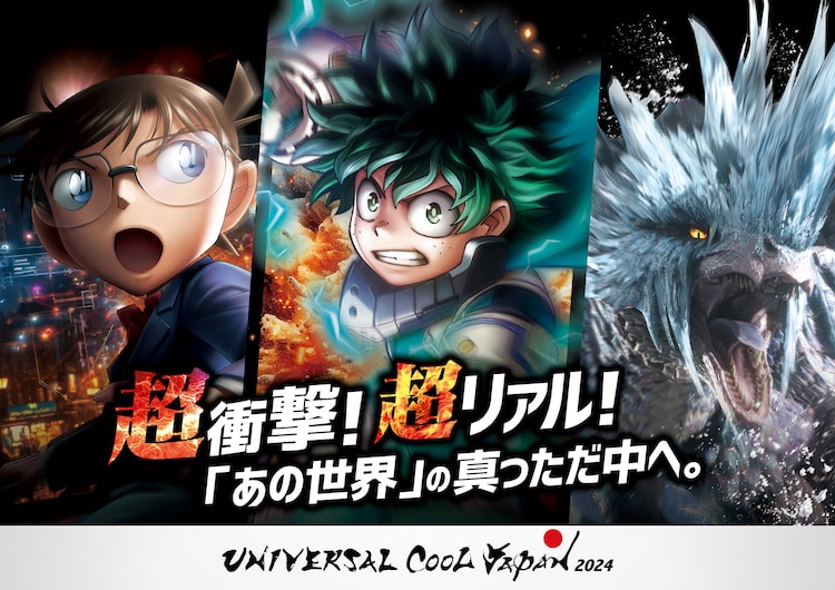 「ユニバーサル・クールジャパン 2024」ビジュアル (c)堀越耕平/集英社・僕のヒーローアカデミア製作委員会 (c) 2024 青山剛昌/名探偵コナン製作委員会 (c)CAPCOM CO., LTD. ALL RIGHTS RESERVED.