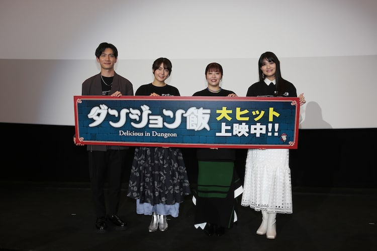 九井諒子原作によるTVアニメ「ダンジョン飯」の劇場先行公開版「ダンジョン飯 ~Delicious in Dungeon~」の公開記念舞台挨拶が、本日12月10日に東京・新宿バルト9に開催され、ライオス役の熊谷健太郎、マルシル役の千本木彩花、チルチャック役の泊明日菜、ファリン役の早見沙織が登壇した。