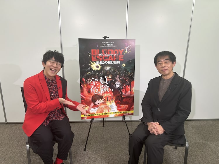 谷口悟朗が原案・脚本・監督を務めるアニメ映画「BLOODY ESCAPE -地獄の逃走劇-」が2024年1月5日に公開される。これ記念し、「BLOODY ESCAPE -地獄の逃走劇-」と同じ世界観で描かれ、谷口が原案・クリエイティブ統括を務めるTVアニメ「エスタブライフ グレイトエスケープ」とのコラボ企画が実施される。