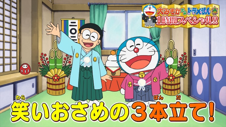 恒例となった大みそかの1時間スペシャル。今年は朝9時から放送される。お正月をテーマに描くオリジナル新作「ゴロ合わせでおせちをつくろう」のほか、ドラえもんとタヌキのハートフルストーリー「ドラえもんに恋したタヌキ」や、2024年の干支でもある竜が登場する中編「空想動物サファリパークと約束の笛」がオンエアされる。
