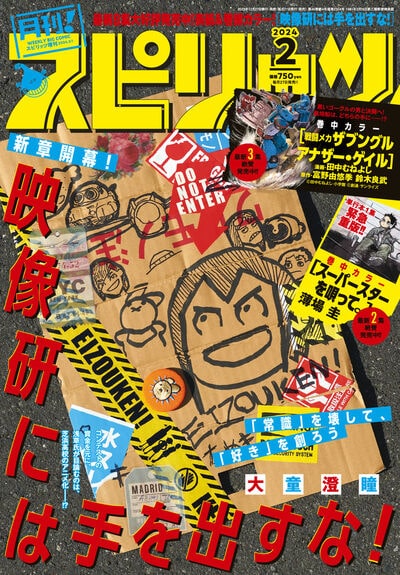 「映像研には手を出すな!」半年ぶりに連載再開、「林檎の国のジョナ」は連載終了 2023年12月27日2023年12月27日 editor 月刊!スピリッツ2024年2月号大童澄瞳「映像研には手を出すな!」の連載が、本日12月27日発売の月刊!スピリッツ2024年2月号(小学館)で再開した。 同誌2023年9月号より休載していた「映像研には手を出すな!」。今号では表紙と巻頭カラーに登場し、新章がスタートした。 なお松虫あられ「林檎の国のジョナ」は11月27日発売の同誌1月号掲載の第3話をもって連載終了となった。著者である松虫と編集部との意向の不一致のため、協議の結果、今回の結論に至ったという。 関連記事「ヴァンパイア騎士」樋野まつり直筆の原稿下絵をプレゼント、原画展開催記念「NAKANOミューラル・アニメロード」誕生、東映アニメーション作品が中野の街を彩るアニメ「ジャングル大帝」放映60周年を祝した純金の記念コイン、価格は約55万円「ダンジョンマスター班目」冒険者をギャンブル沼に落とす異端のダンジョン運営物語「呪術廻戦」の虎杖悠仁、「サタプラ」で特級ウィンナーソーセージを大発表「みんなが選ぶ!!電子コミック大賞 2026」中間発表 各部門上位にランクインしたのは Tweet 関連コミック 映像研には手を出すな! 林檎の国のジョナ