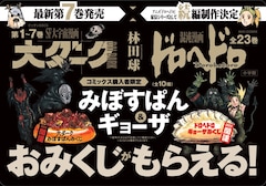 林田球「大ダーク」7巻が、本日1月12日に発売された。去る1月9日には林田の前作を原作としたアニメ「ドロヘドロ」の続編が、配信シリーズとして制作されることが発表されたばかり。「大ダーク」7巻発売とアニメ「ドロヘドロ」の続編制作を記念し、全国の一部書店では2024年の運勢を占える「みぼすぱん&ギョーザおみくじ」がもらえるフェアが開催されている。