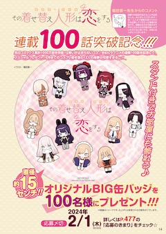 「その着せ替え人形は恋をする」が100話突破!ビッグな缶バッジ当たるキャンペーン開始