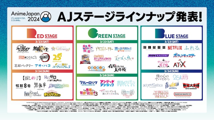 アニメイベント「AnimeJapan 2024」の全ステージのラインナップと、出演者情報の一部が発表された。