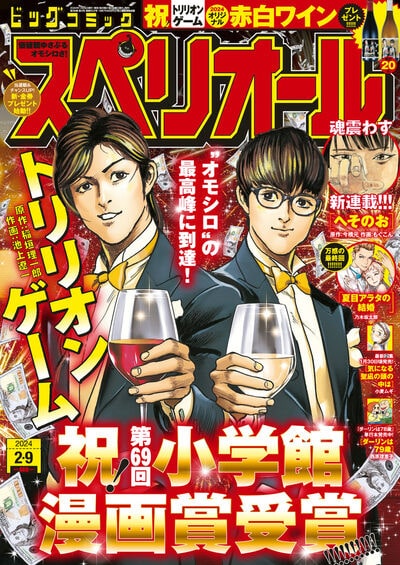 先日発表された第69回小学館漫画賞で受賞作品に選ばれた「トリリオンゲーム」。これを記念し、今号の表紙イラストをあしらったラベルワインが計20人にプレゼントされる。用意されたのはブルゴーニュの赤と白。応募方法などの詳細は誌面にて確認しよう。