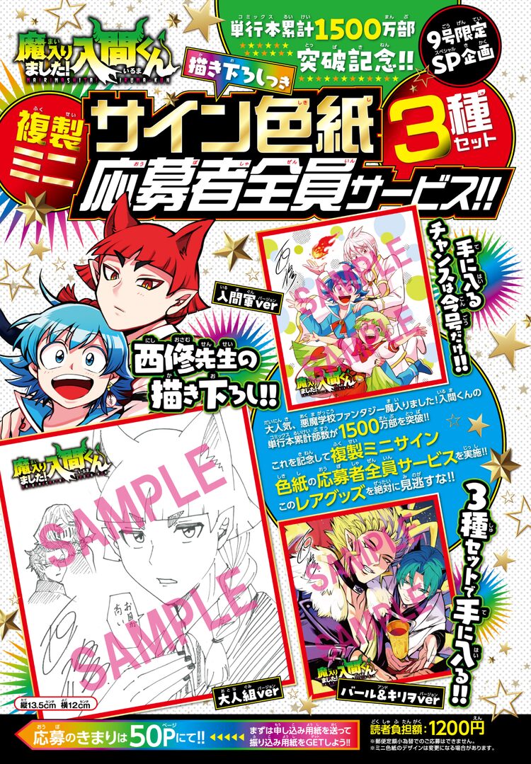 「入間くん」西修の複製サイン入色紙3枚セットが週チャン全サに、絵柄は描き下ろし