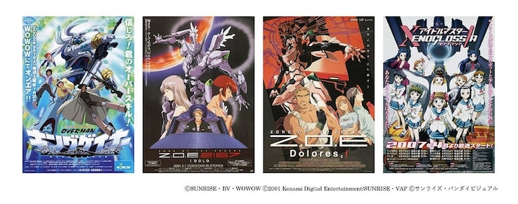 左から「OVERMAN キングゲイナー」ビジュアル、「Z.O.E 2167 IDOLO」ビジュアル、「Z.O.E Dolores,i」ビジュアル、「アイドルマスター XENOGLOSSIA」ビジュアル。